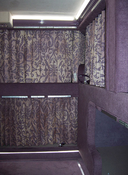 Berths are designed with passenger comfort as a priority concern, with large openings, padded surfaces, and maximized use of space.